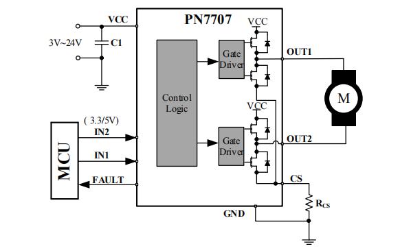 PN7707多通道閥門驅動芯片是一款具具有低功耗睡眠模式、外部限流可調的兩通道直流馬達驅動芯片,集成了欠壓保護、過溫保護、輸出短路保護和外部可調節驅動限流等功能,並且可以將錯誤狀態反饋給MCU,保障馬達安全工作。