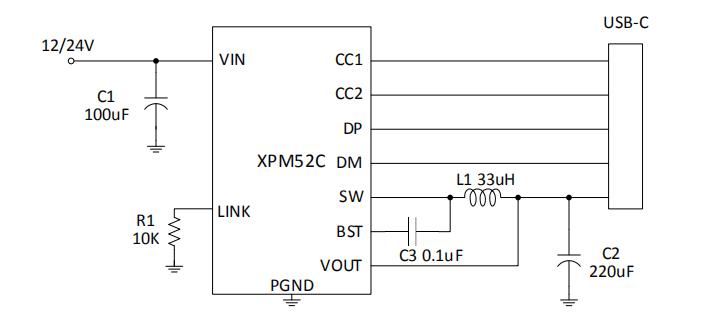 XPM52C PD快充降壓芯片具有自動識別 VIN 輸入電壓的功能,依據輸入電壓來調節輸出電壓。