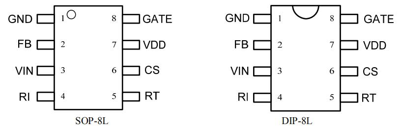 | 3 | VIN | 啟動引腳。該引腳通過一個大的啟動電阻連接到整流後的交流輸入端。這個引腳的作用主要是快速啟動和用於 OCP 補償的線性電壓檢測。 |