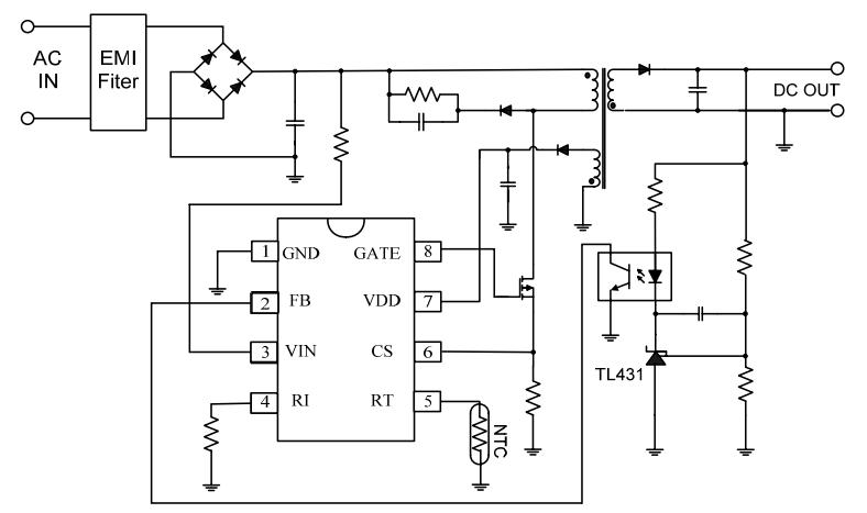 | 2 | FB | 電壓反饋引腳。通過外接光耦到該引腳來進行環路調節。PWM 的占空比由該引腳的電壓和第六引腳的電流檢測電壓共同決定。 |