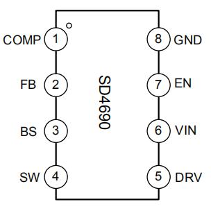 SD4690是一款SOP8封裝、高效率的降壓型DC-DC轉換芯片。芯片內部包括誤差放大器、振蕩器、電流比較器、斜坡補償、電流采樣、邏輯驅動等模塊,內置峰值電流模式的PWM控製環路,補償網絡外部可調,可在寬負載範圍內提供穩定的輸出電壓。
